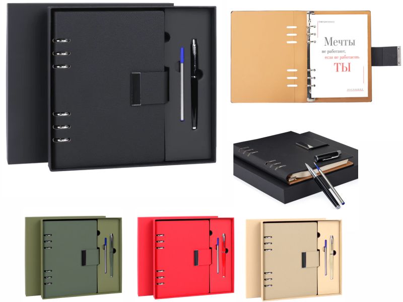 1 314.00Ежедневник на кольцах в наборе с ручкой А5, 165x229 мм, под кожу. Комплектация: недатированный ежедневник на кольцах. Ежедневник фиксируется магнитной застежкой. Набор упакован в плотную подарочную картонную коробку. Ручка со стильным корпусом в тон ежедневника и высококачественными чернилами. Сменный стержень в комплекте.Набор упакован в плотную подарочную картонную коробку. Все элементы набора выполнены в одном цвете.