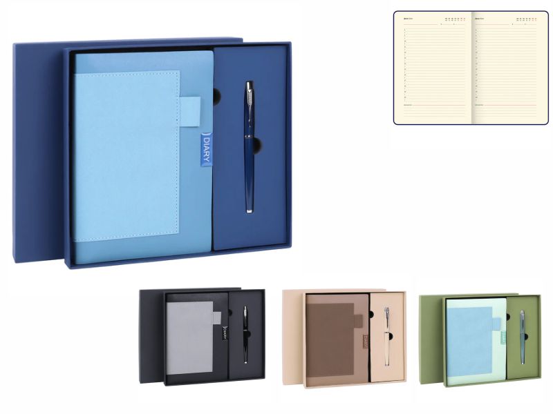 1 014.00Ежедневник в наборе с ручкой А5, 144x210 мм, под кожу. Комплектация: недатированный ежедневник каждая страничка имеет перфорированный угол. Ручка со стильным корпусом в тон ежедневника и высококачественными чернилами Набор упакован в плотную подарочную картонную коробку. Все элементы набора выполнены в схожих оттенках.